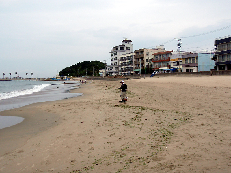 ツヌケしたところで雨がパラつき始め、「最凶雨男」 の面目躍如(笑)。雨具を車に取りに帰るのも面倒なので、海岸沿いの店舗の軒先で雨宿り。缶コーヒーを飲みながら雨が上がるのを待つ。雨が上がり、薄日が差す中で釣り再開。相変わらずピンギス中心。ふぅ……。そうこうするうちに満潮潮止まりの午前8時となり、アタリがピタリと止まった。ま、潮が止まってはいたしかたない。O田代表から小野浦へ移動しようとの提案で場所替え決定。