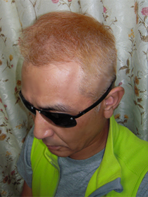 これは心境の変化とか、やけのやんぱちで金髪にしたワケじゃありません。髪を染める準備、前段階です。以前、美容室でとんでもない目に遭ってから、髪を染めるのをやめていたんだが、白髪混じりのゴマ塩頭は、いかにも五十がらみのオッサンって感じでカッコワルイ。染めるにしても、白髪と黒髪で染まり具合にムラが出ちゃうので、一旦、ブリーチで髪の色を抜いて金髪にしてから、染毛料で染めるってワケ。家内曰く、"出来の悪い やしきたかじん" らしい。数日後には黒く染めちゃうんだから、そんなに言うな(笑)。