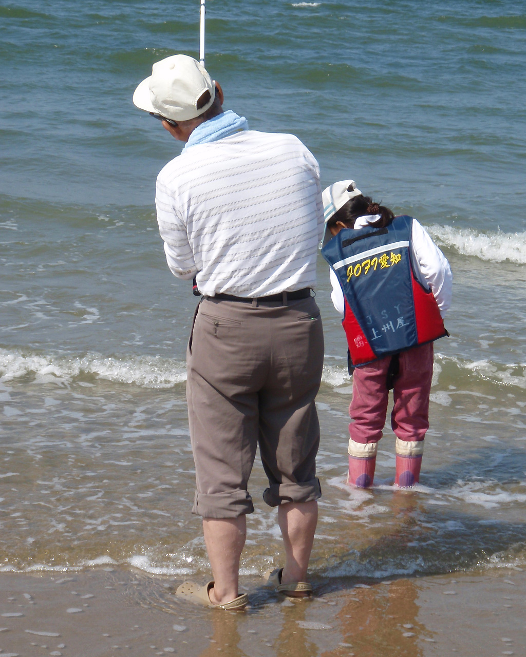 今回は受講生一家族に一人のインストラクターが付き、かなりきめ細かく釣り指南を行ったんだが、自分が担当したOファミリーは全員が釣りは生まれて初めてという、おじいちゃん、おばあちゃん、おとーさん、おかーさん、おねーちゃんにいもうとの6人家族。釣りの基本ウンヌンの前に、釣竿なんか持ったこともない人ばかり。つ~ま~り~、インストラクターのコーチングスキルがバッチリ現れる最高のシチュエーションなワケです。うむ、望むところだ(笑)。