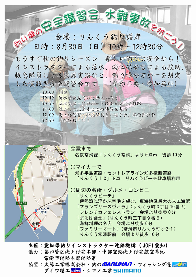 JOFI愛知主催 『釣り場の安全講習会』 開催 (参加予約不要・参加無料)